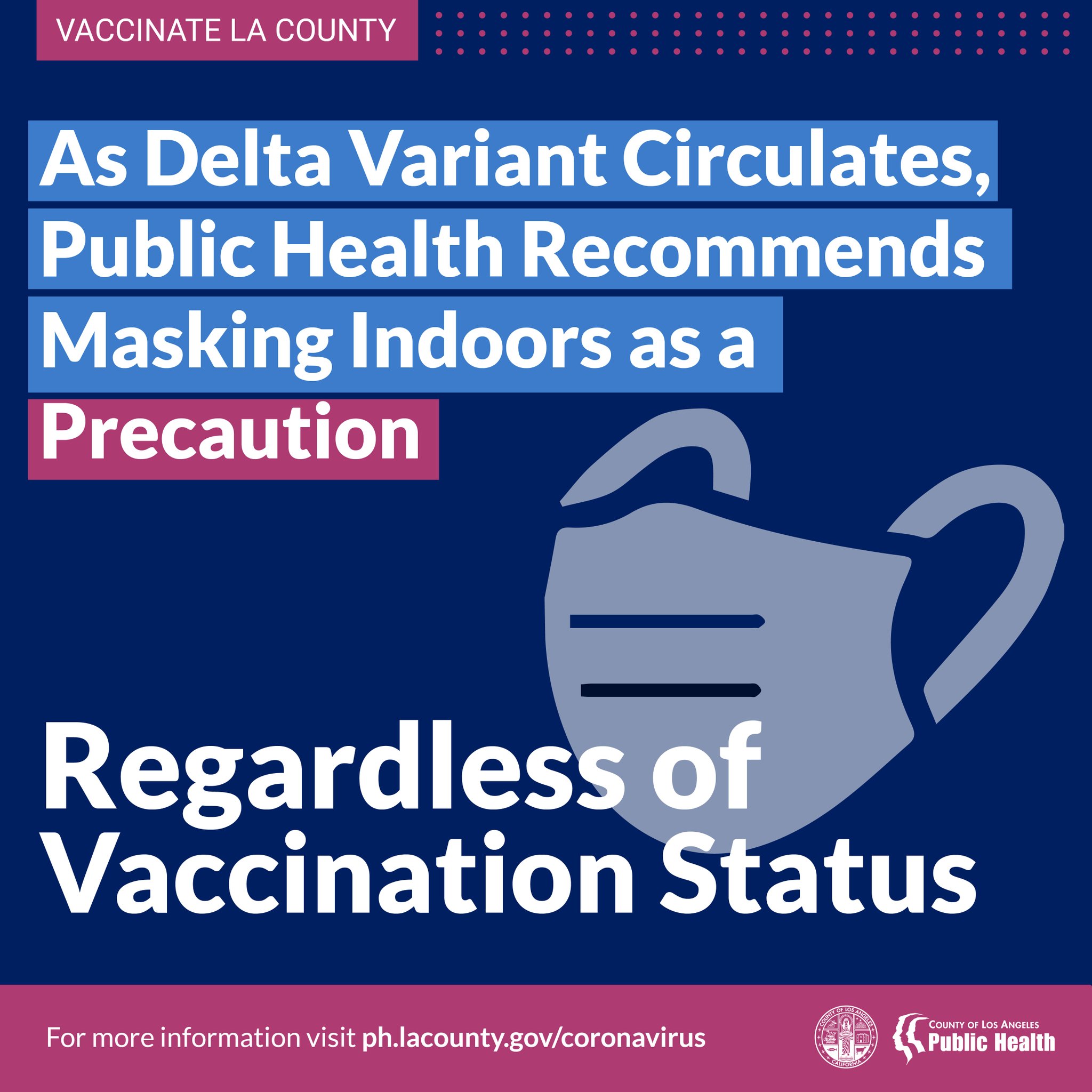 La Public Health On Twitter With More Circulation Of The Highly Transmissible Delta Variant We Strongly Recommend Everyone Regardless Of Vaccination Status Wear Masks Indoors In Public Places As A Precaution Per The Cdc The Delta Variants Are Now